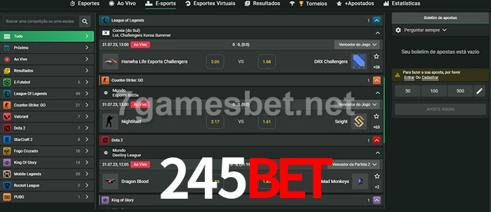 O 245bet oferece uma grande seleção de opções de apostas em e-sports com probabilidades competitivas